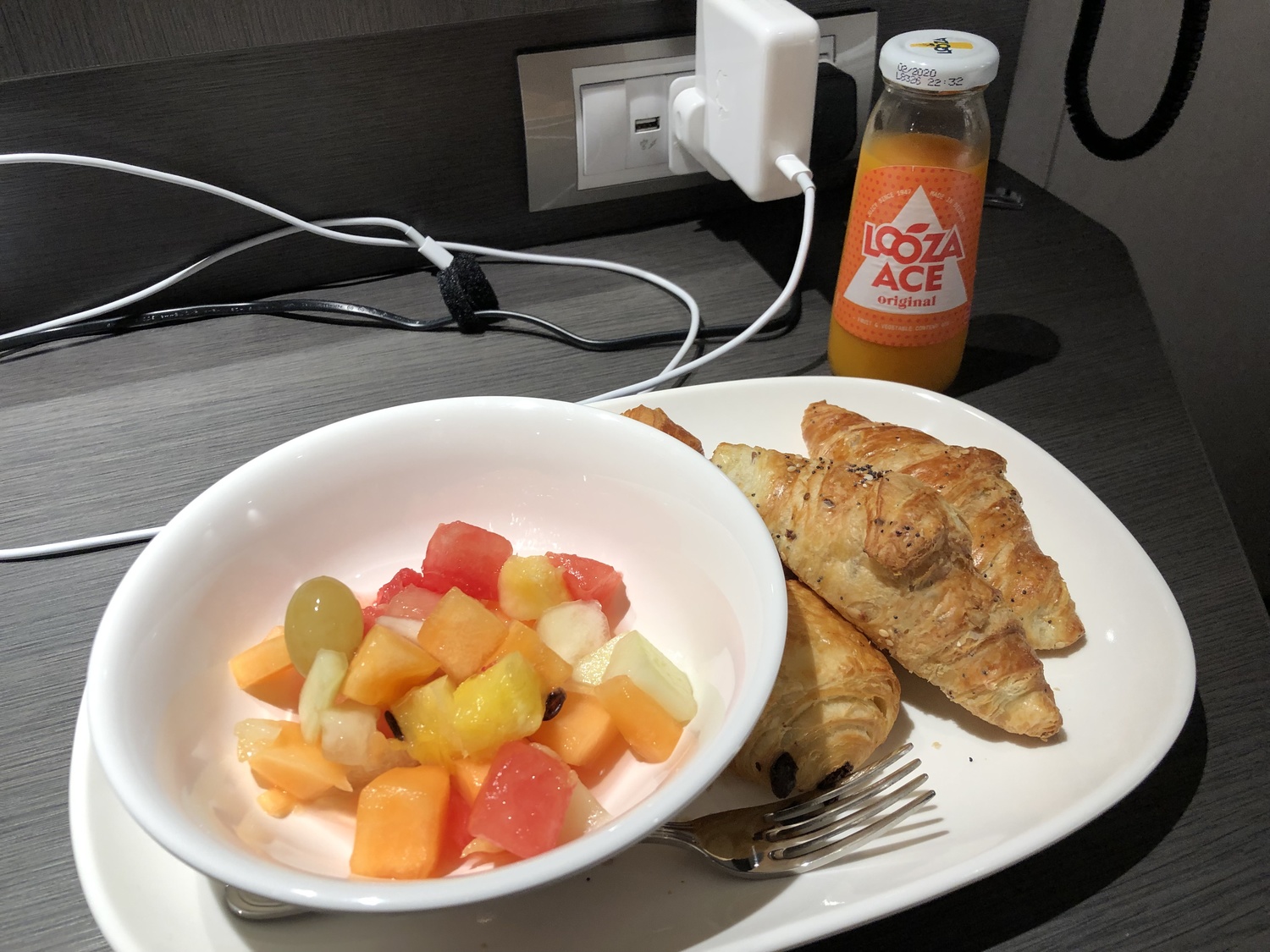 I brought back some pastries and fruit, along with a bottle of water and some juice, so we could have a nibble and hopefully feel better. The pastries are very good - there were a lot of other options but I was on a mission and didn’t spend much time exploring.