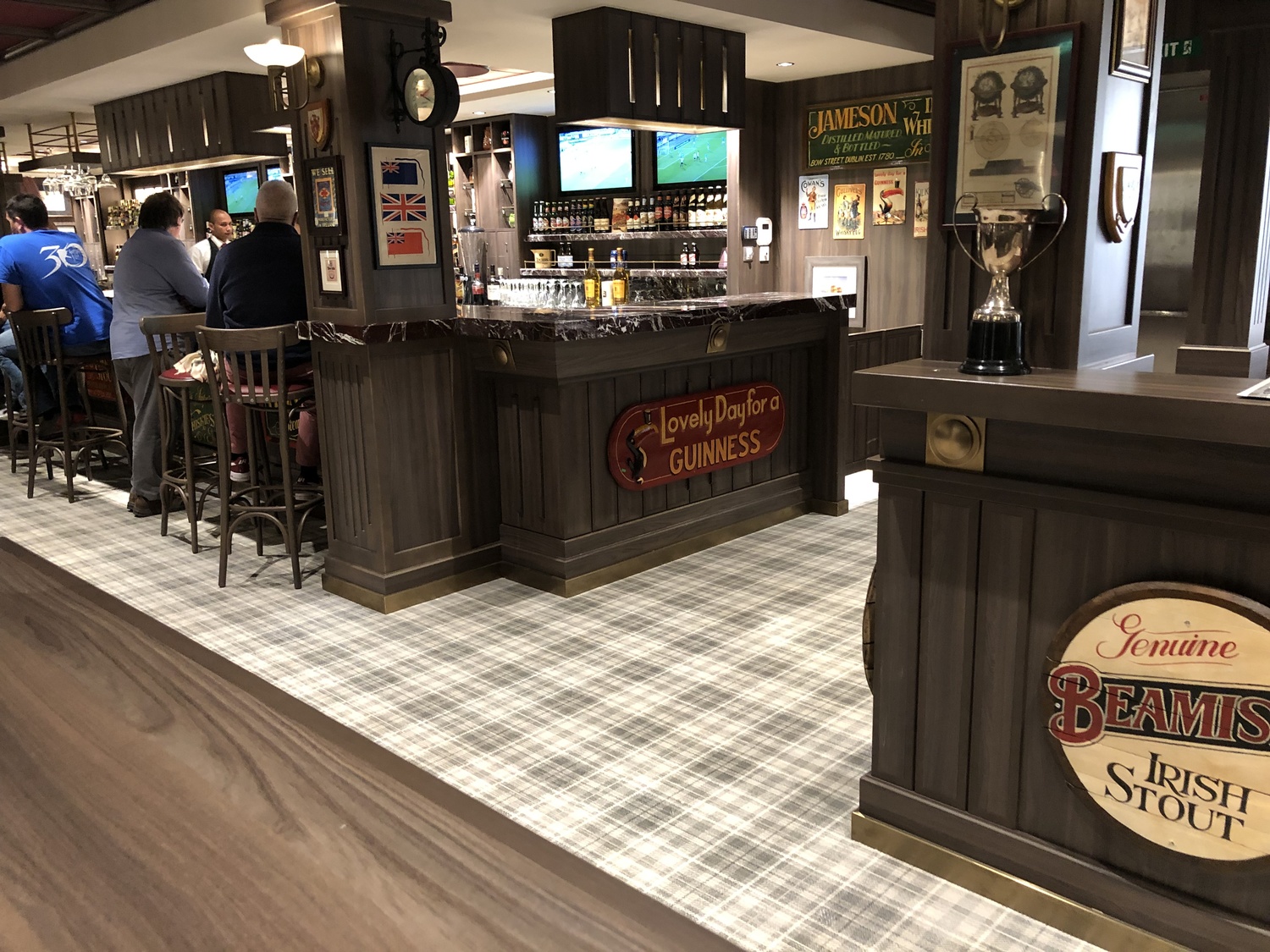 The pub itself is a fairly stereotypical / Disney-style version of a British/Irish pub. There are a lot of old advertising signs for beer, as well as little black and white photos of unidentified sports players. It’s good fun, and clearly a popular choice with the predominantly British clientele.