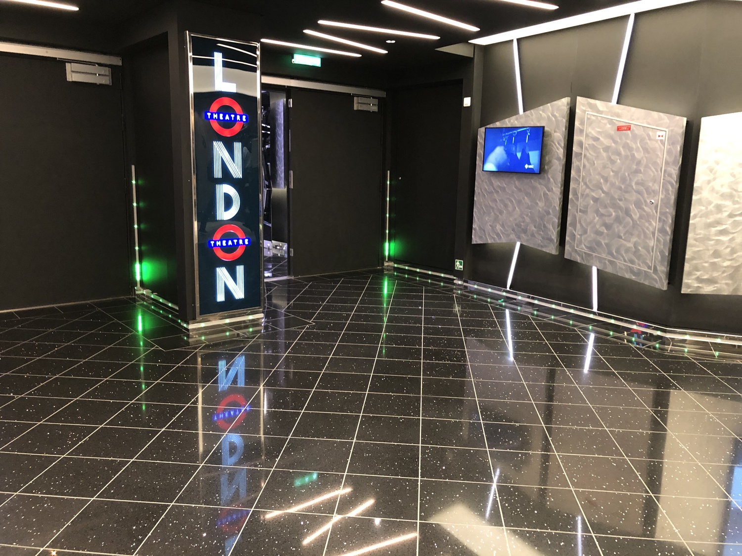 First, a word about the theatre. The London Theatre is one of the least impressive theatres on the ship. The capacity seems low for a ship of this size, and the decor a little underwhelming compared to the rest of the ship. There’s just a single level. It might be because they have a second, dedicated performance space for the Cirque du Soleil shows, reducing the need for such a huge theatre space.