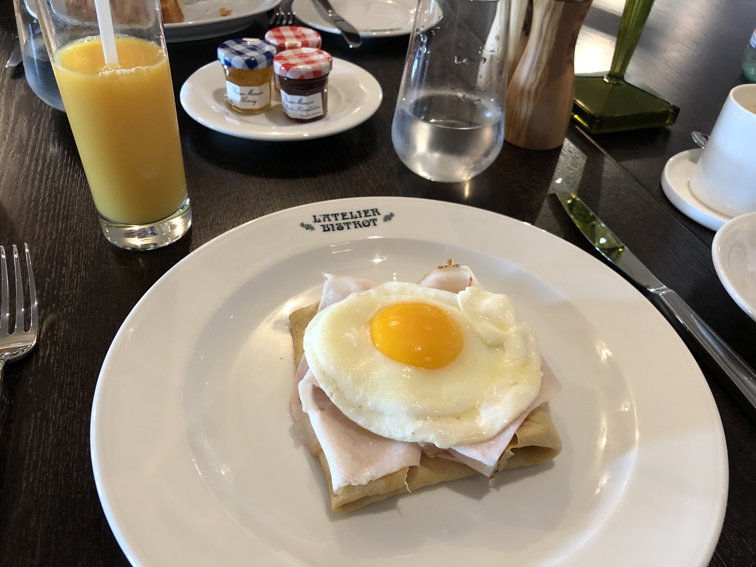 We both ordered a croissant and I also added a ham and cheese crêpe. It was all delicious, and much more relaxed than the buffet.