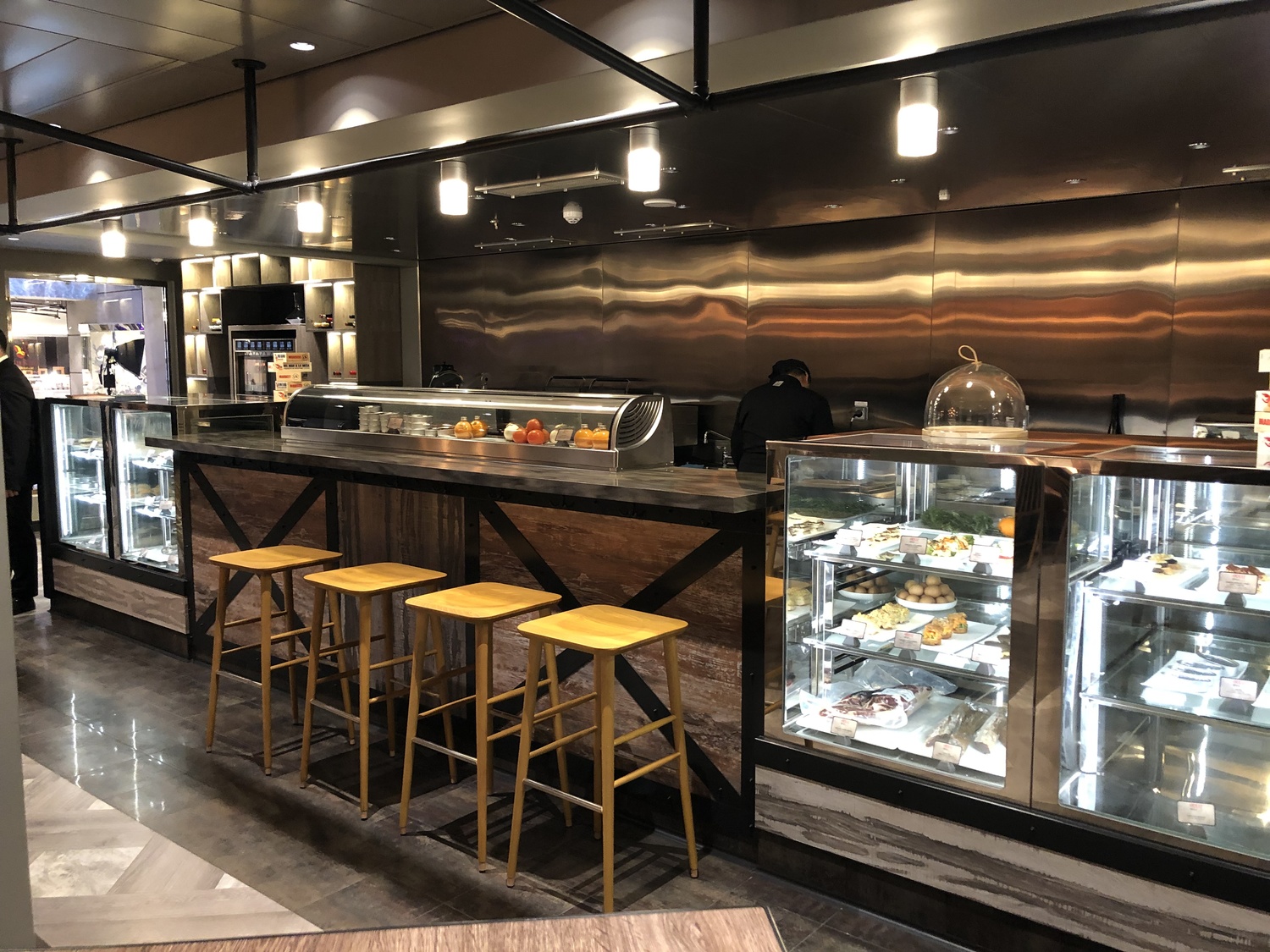 We eventually settled at the Horizon Bar, which was sheltered from the wind and surprisingly pleasant. We got a cheeky pre-noon cocktail and sat enjoying the sea air and the ocean views before heading inside. This would be a great place to get a coffee with some pastries from the buffet in the morning.