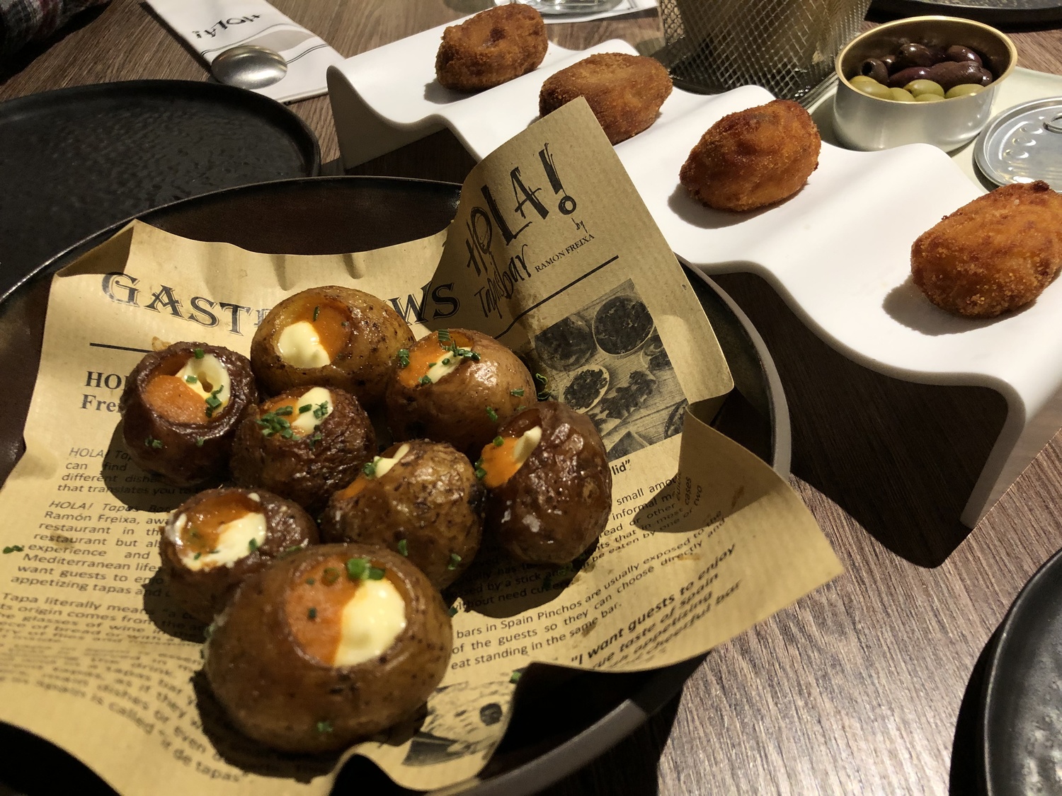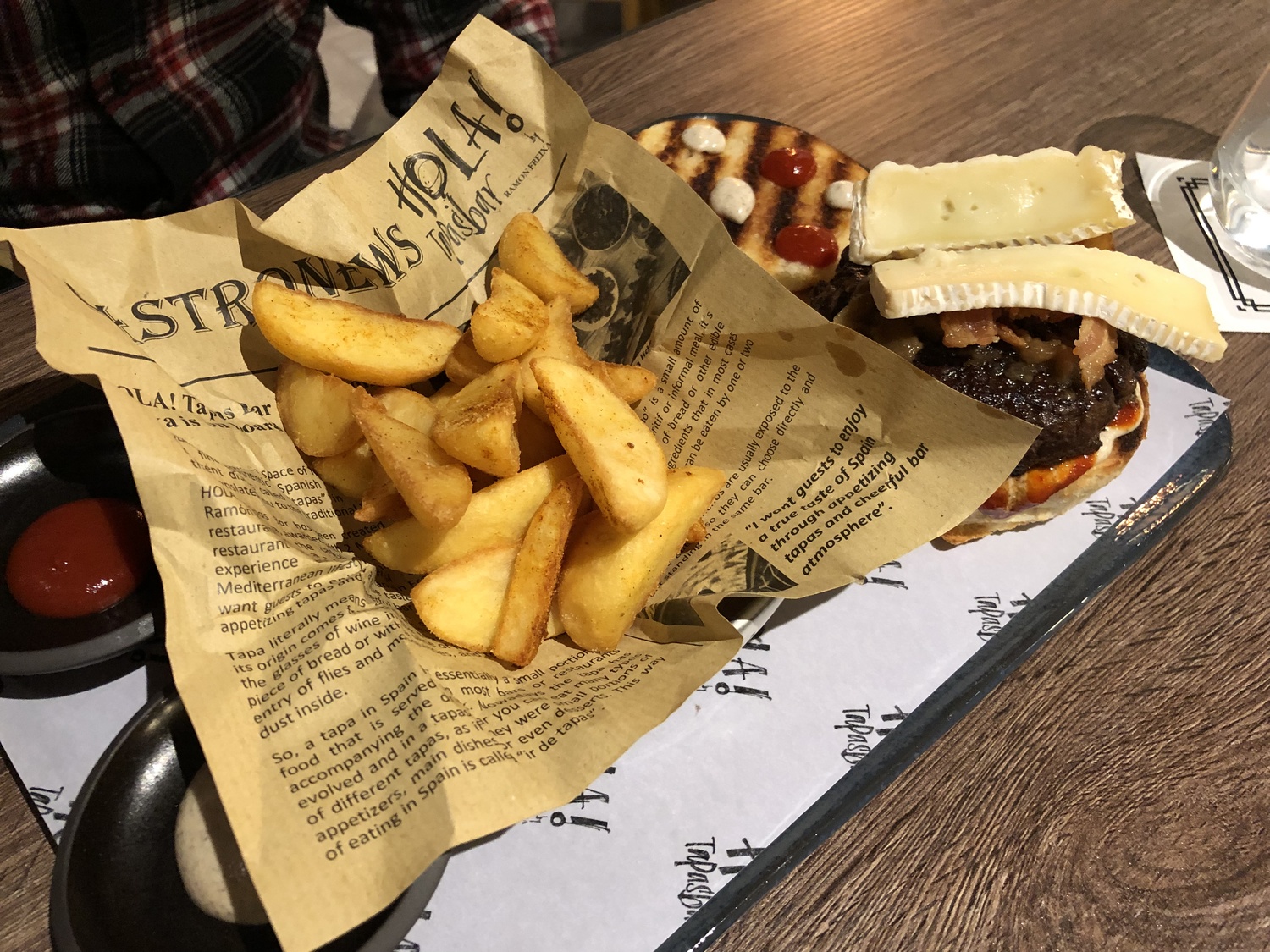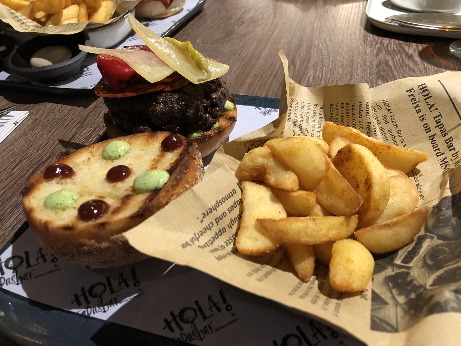 The menu offered as part of the package offers a selection of tapas from a set menu. You can select 5 each, so 10 for the table. You also get a burger and fries each, and a choice of dessert. Frankly, this was far too much food. The burger was wholly unnecessary and not something I really want after tapas. We were completely stuffed after the tapas.