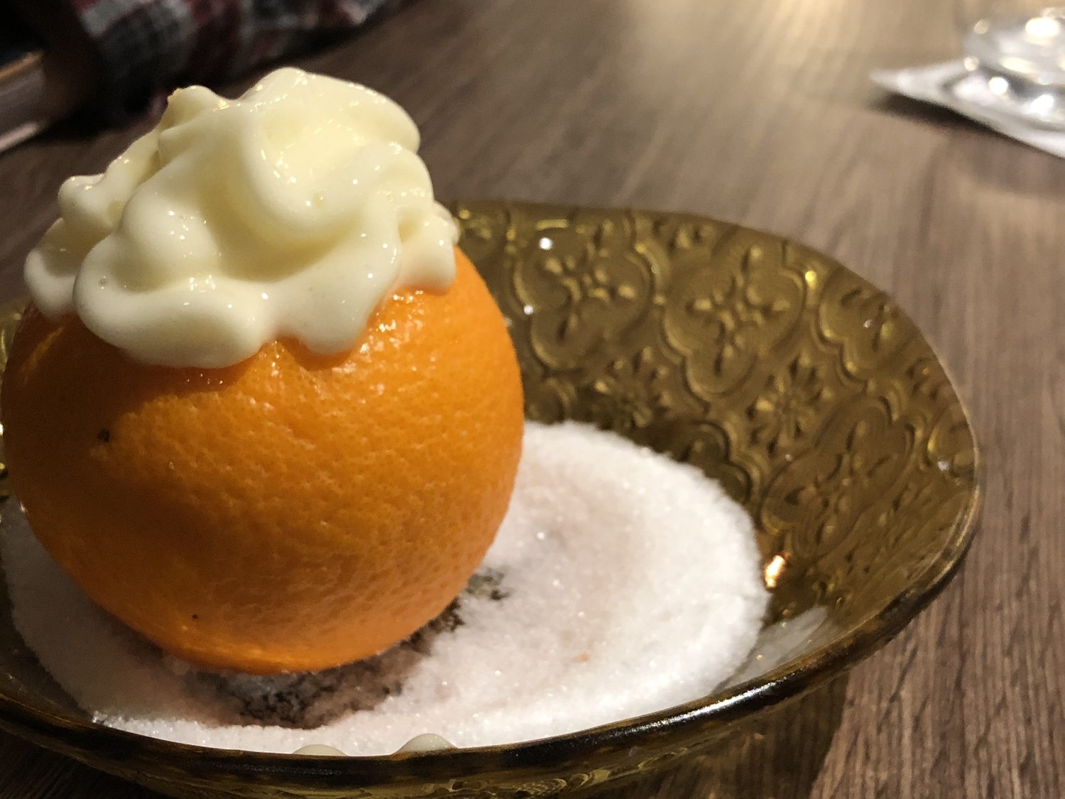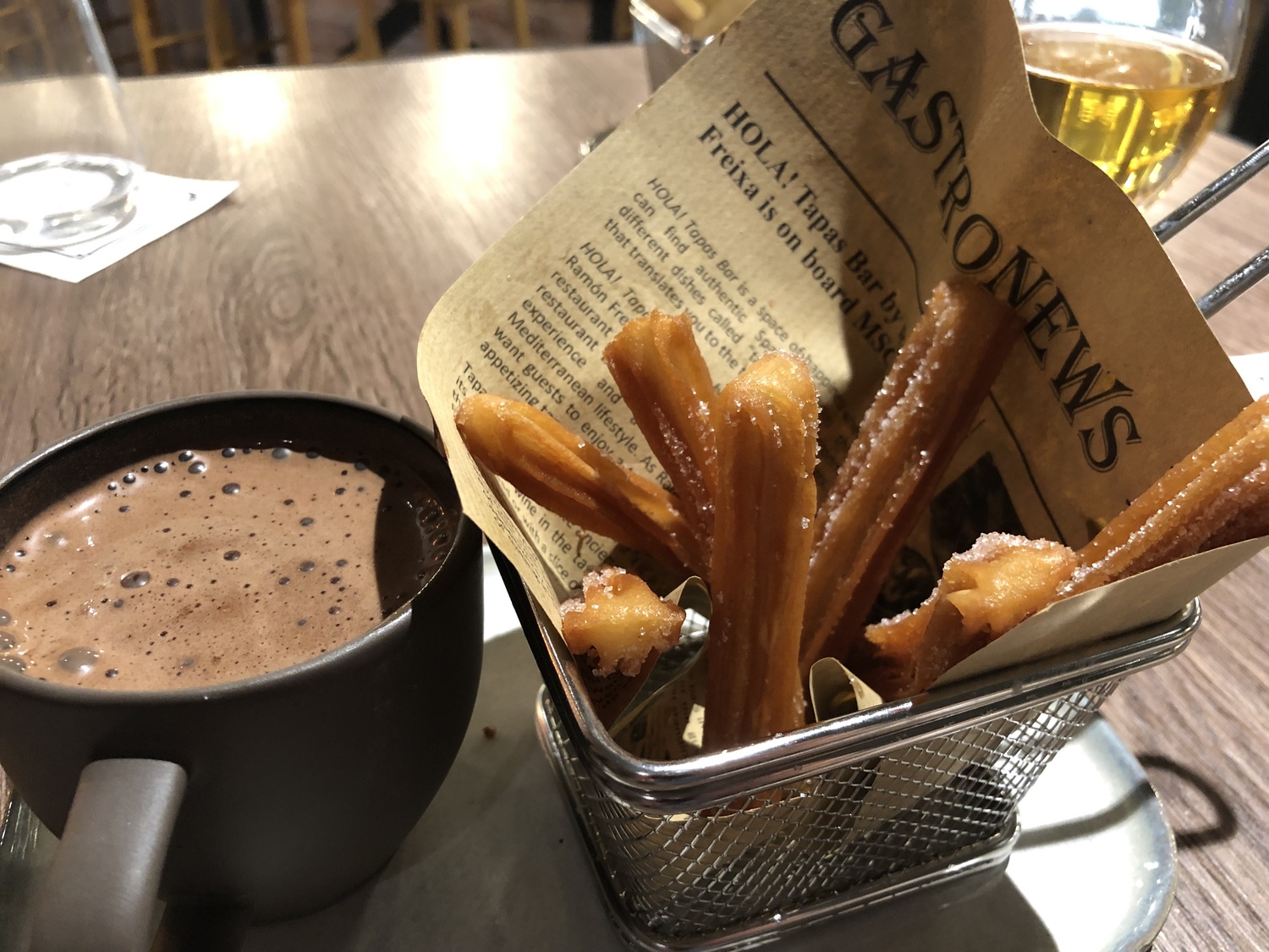 We ordered churros and ‘orange in different textures’ for dessert. The churros were terrible. Completely overcooked and crunchy, though the foamed dark chocolate dip they were served with was excellent. The orange dessert was lovely though. It consisted of a light orange foam topping an orange sorbet, with some orange pieces at the bottom. It was light, fresh, and just the ticket after a big meal.