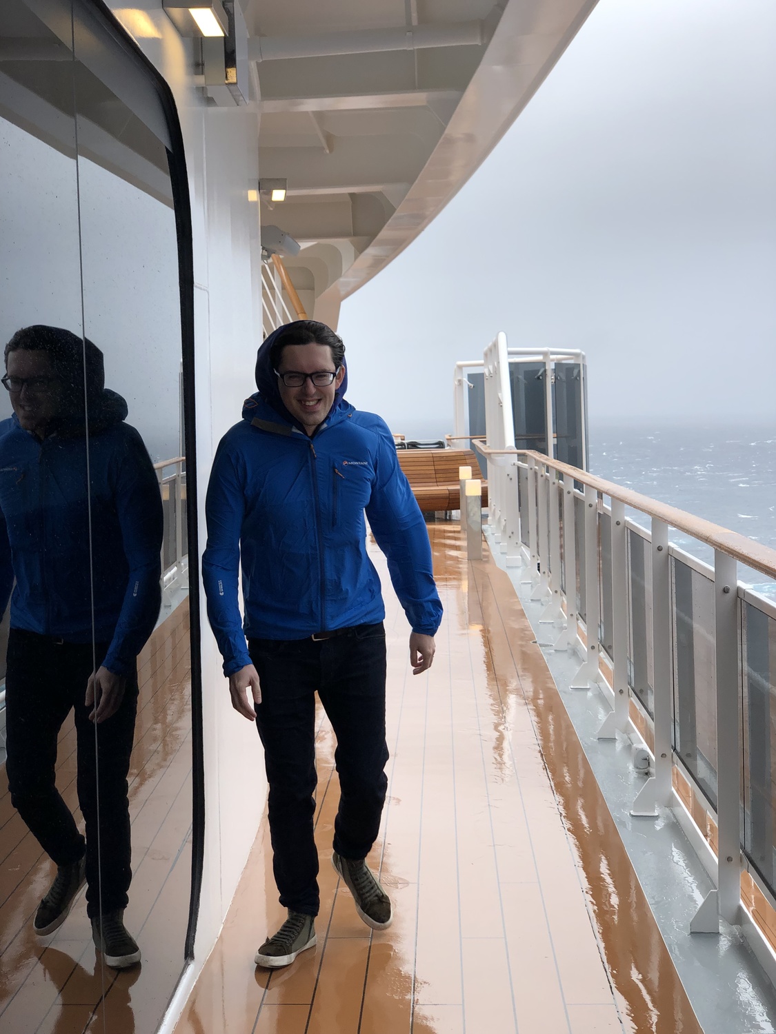 We decided to have a walk after breakfast and so donned our warm hoodies and waterproof jackets to explore the upper decks a little.