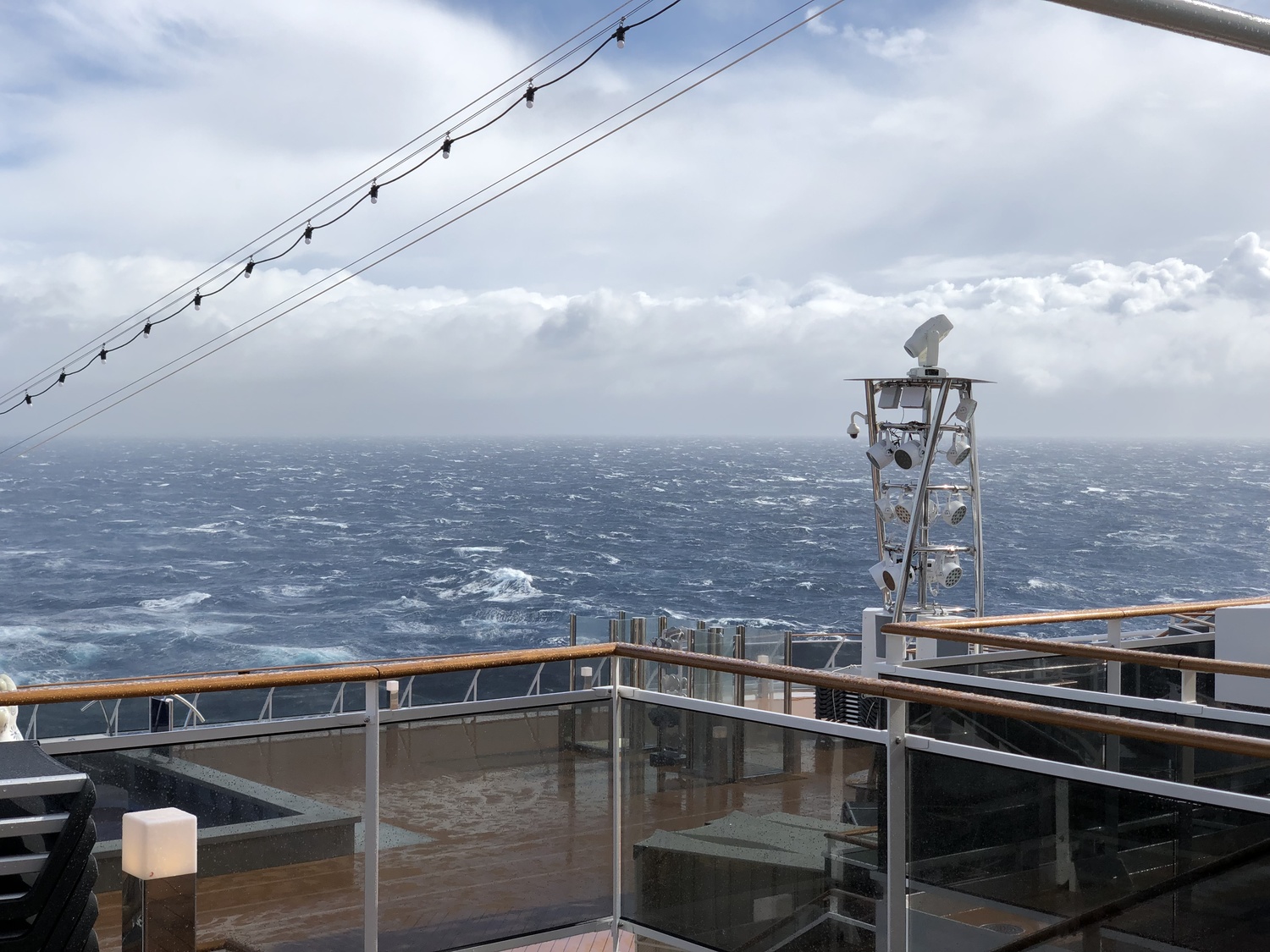 At the back of the ship we saw another drained pool and got some great views of the ship’s wake. You could really see the ocean doing its thing, though it doesn’t look as bad as it feels.