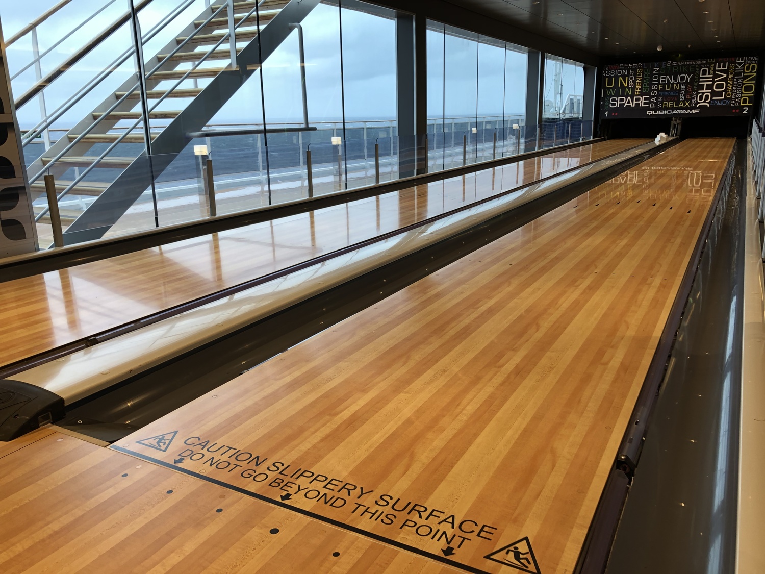 Overall it’s a really nice space. On previous MSC ships the bowling alley and F1 simulator were in completely different areas and I think it makes a lot of sense to bring all of these facilities together in the same place. While we were there some people were kicking a ball around and shooting a basketball. Lots of fun for the sportier members of your group!