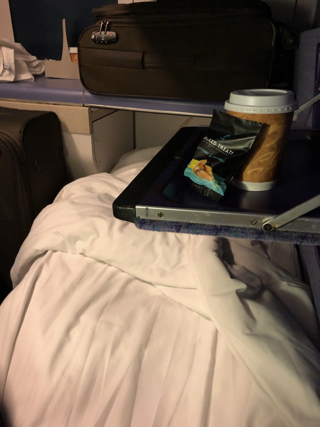 We squeezed our suitcases along the corridor and into our berth as our friendly attendant explained the morning process, offering a wake-up call and whether we’d like tea, coffee, or juice in the morning.